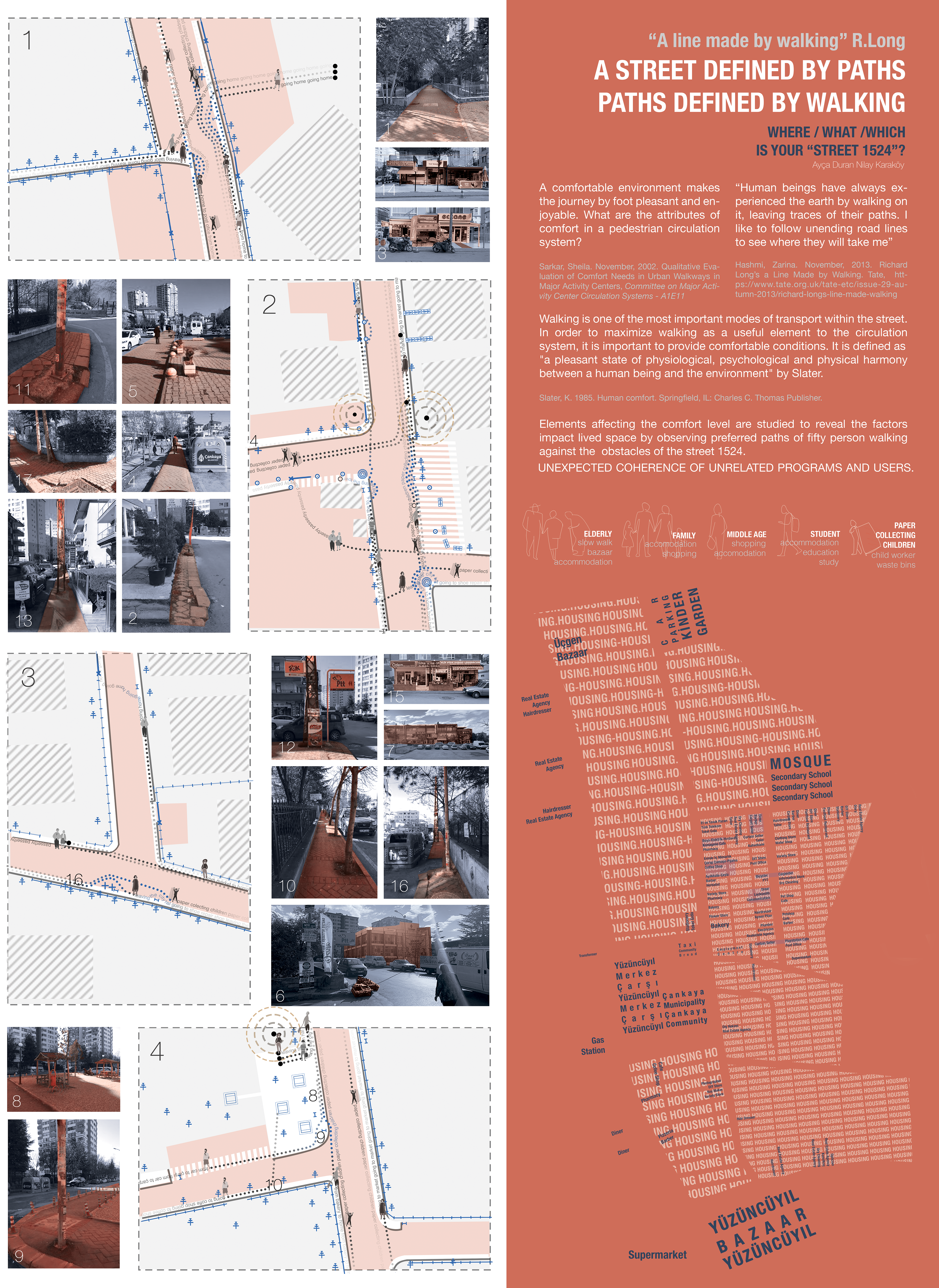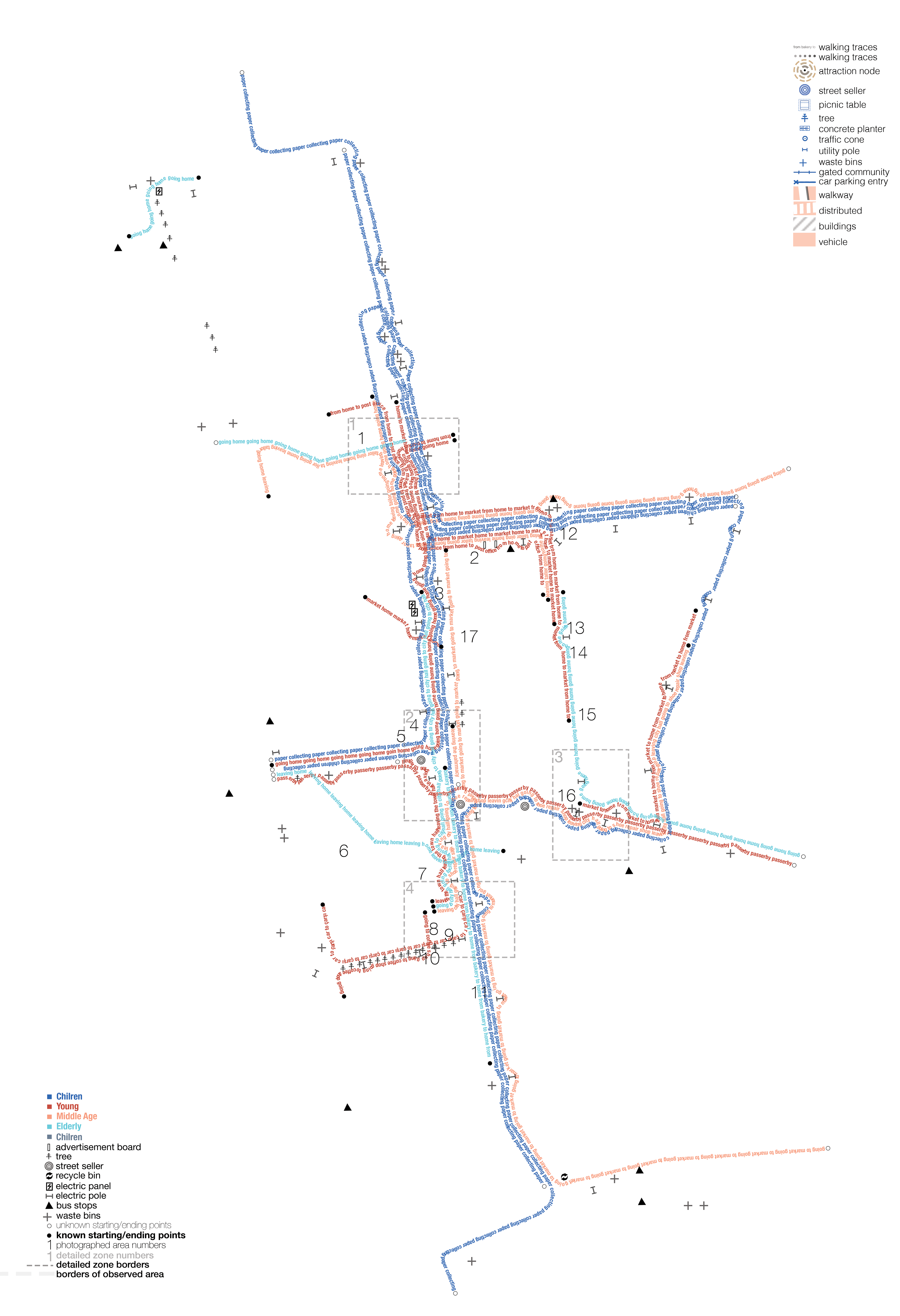 This work explores the intersection of walking and data within urban environments via mapping the observations related to pedestrian movement, urban form, and environmental factors.
